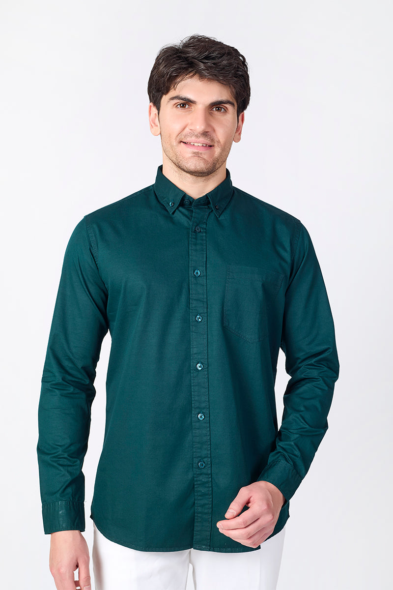 Dobby Cotton Solid Slim Fit Casual Shirt - Bottle Green