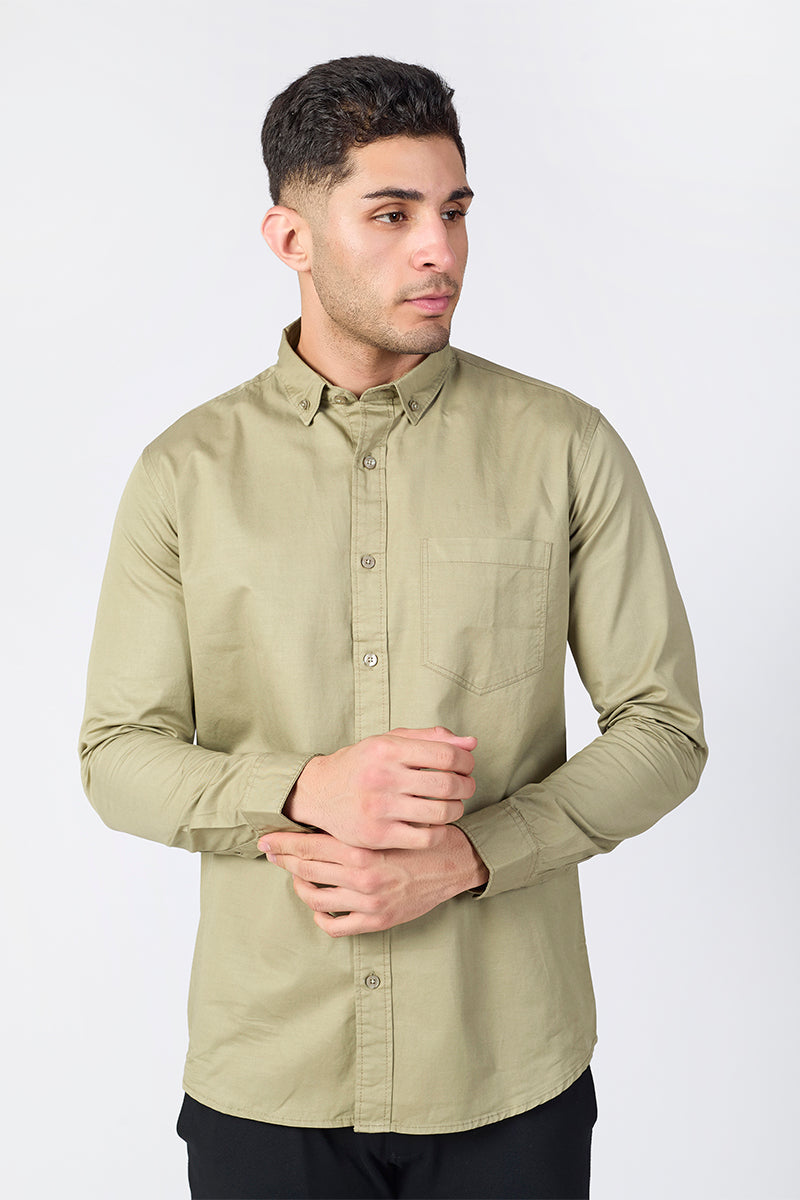 Dusty Olive Giza Slub Slim Fit Casual Shirt