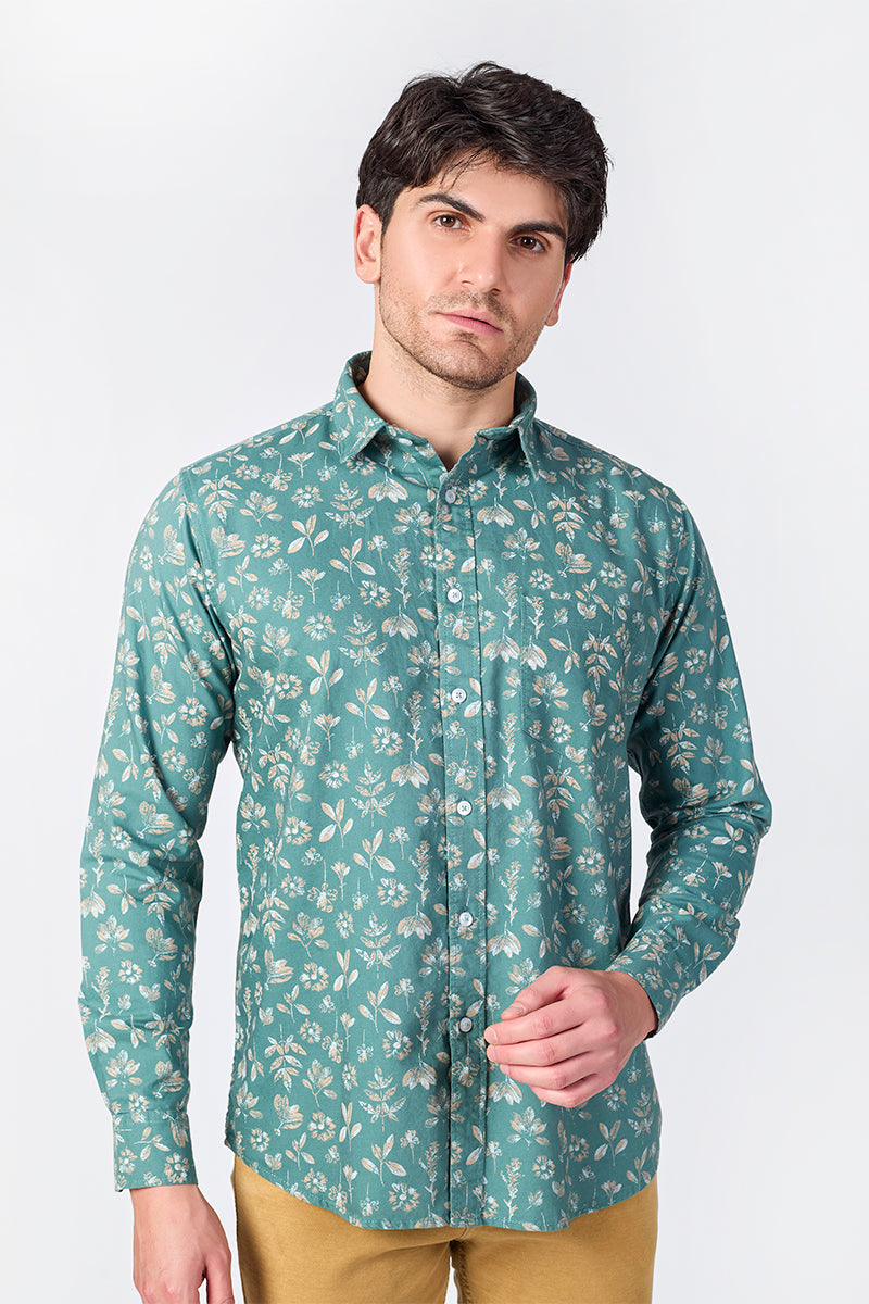 Men's Printed Full Sleeve Shirt - Sage Leaf Green