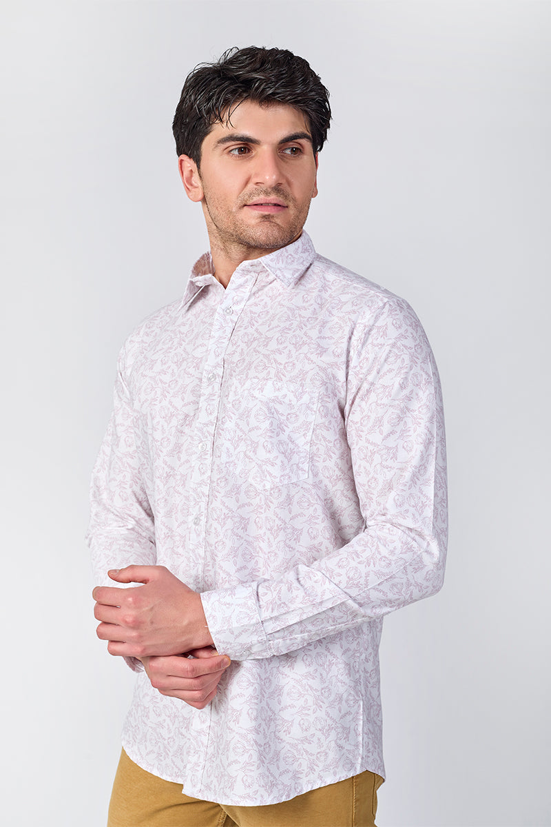 Men's Printed Full Sleeve Shirt - Plum Maroon