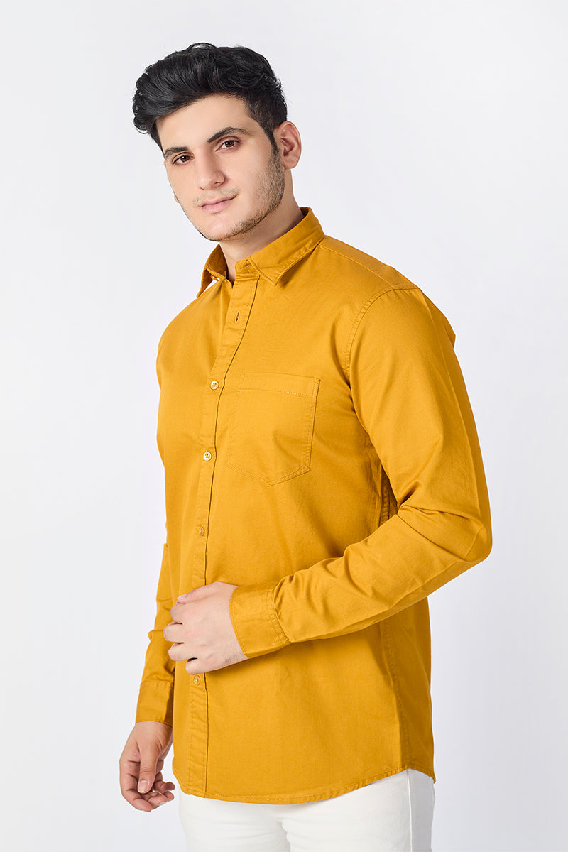 Dobby Cotton Solid Slim Fit Casual Shirt - Mustard Yellow