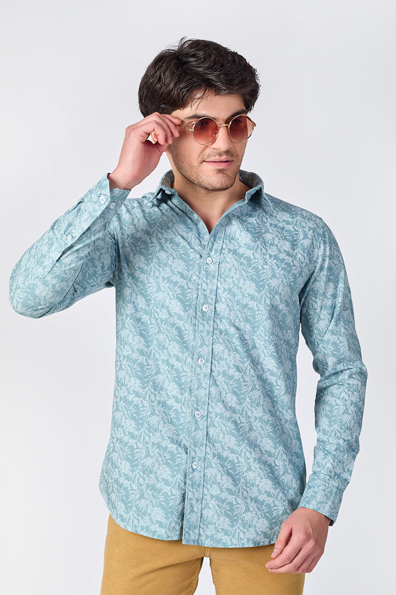 Men's Printed Full Sleeve Shirt - Sky Blue