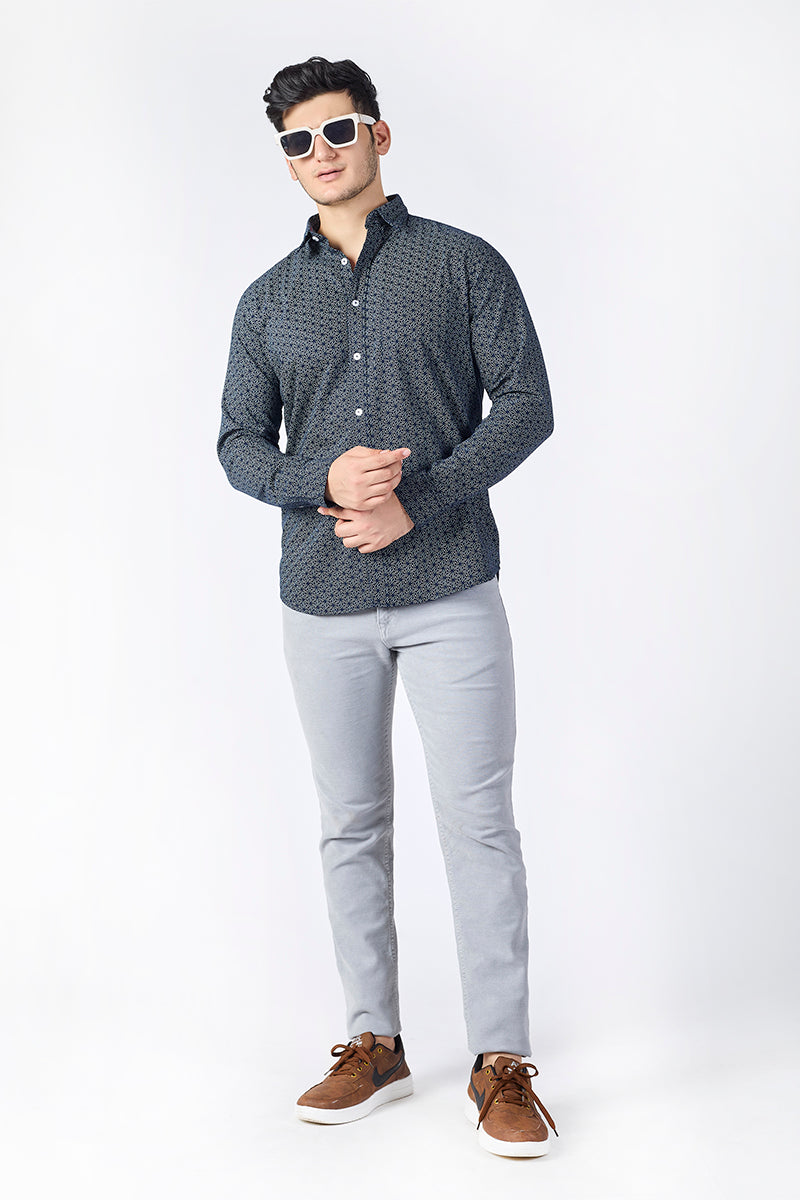 Men's Printed Full Sleeve Shirt - Denim Blue