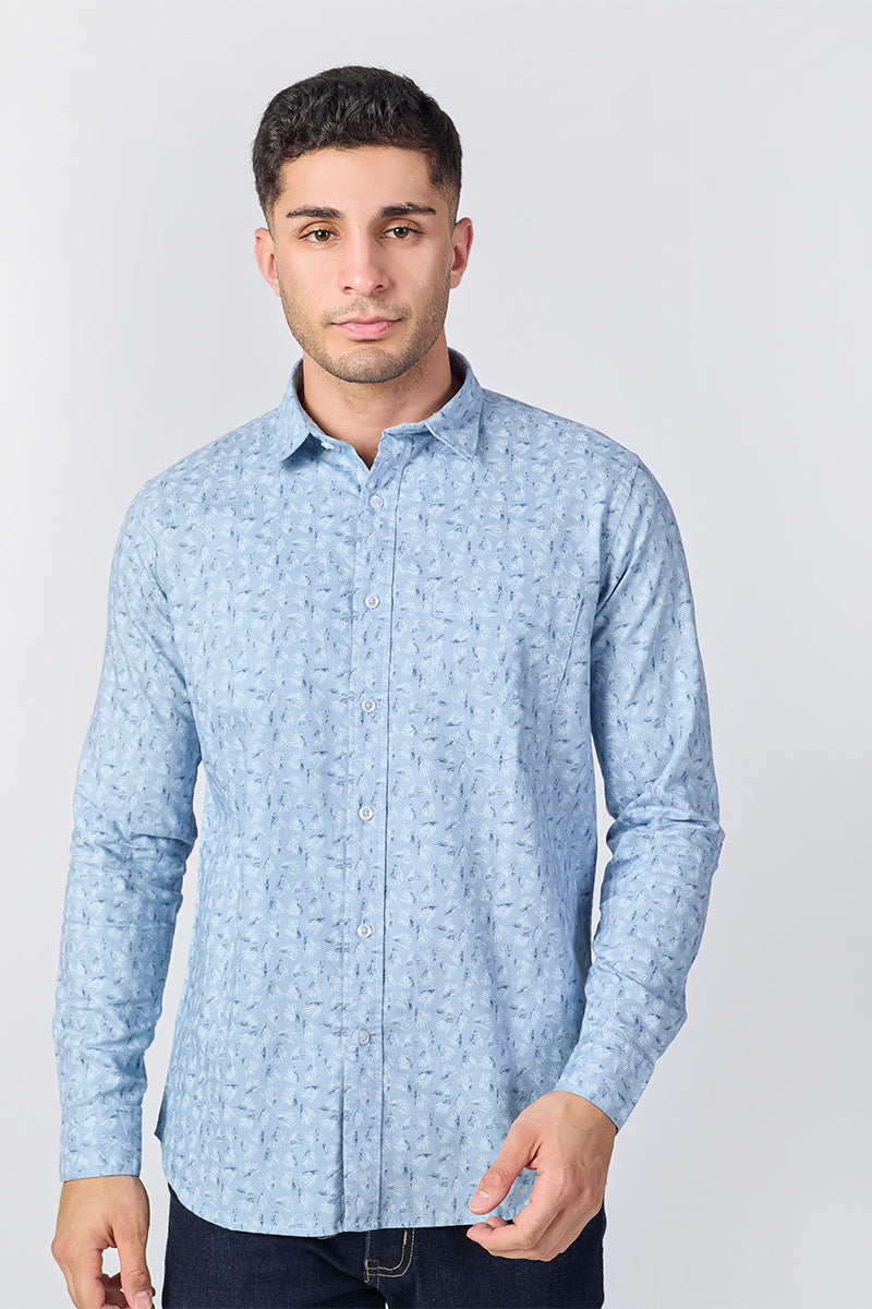 Men's Printed Full Sleeve Shirt - Light Blue