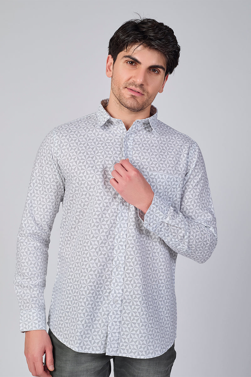 This Men's Printed Slim Shirt is designed for everyday comfort with a stylish twist. Crafted from a 100% cotton blend, it offers a breathable and soft feel throughout the day. Featuring full sleeves, a classic collar, and a printed pattern, it brings a fresh look to your casual wardrobe. The curved hem design adds versatility, perfect for both tucked and untucked styles. Its slim fit ensures a clean and modern silhouette.Β  The model is 6 feet tall and wears a size L. Cold machine wash recommended.